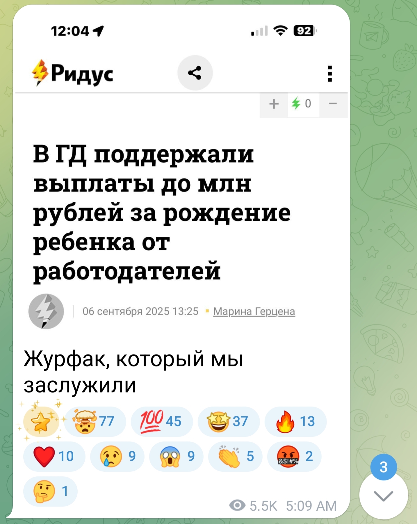 2е сообщение за сегодня