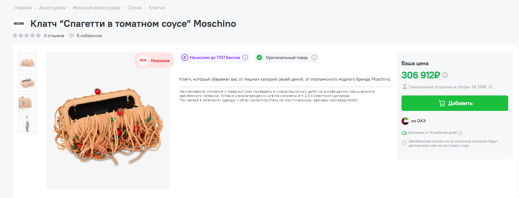 Moschino выпустил клатч в виде спагетти за 3250 долларов