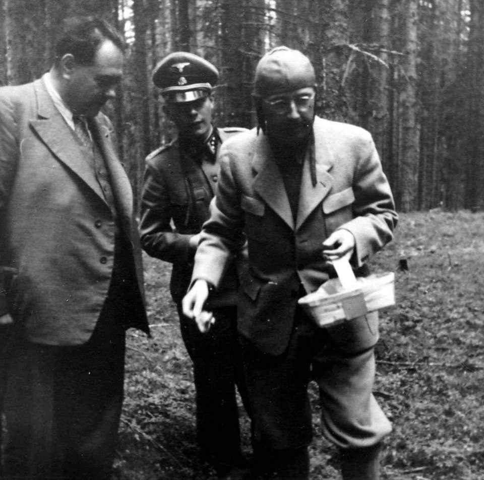 Военный преступник рейхсфюрер СС Генрих Гиммлер собирает грибы в свой день рождения 7 октября